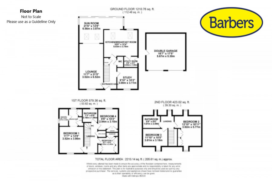 FLOOR PLAN This floor plan is not to Scale. Please use as a guideline only. Measurements are taken at the widest points of the rooms so, with this being a dormer bungalow, there is some reduced headroom to the first floor accommodation.