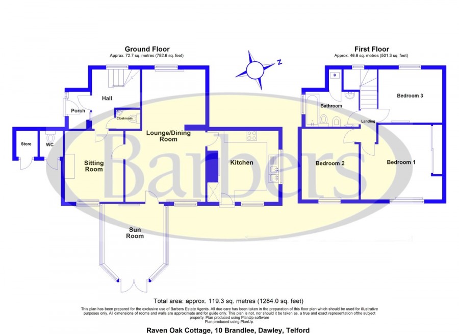 By arrangement with the Agents' office at 1 Church Street, Wellington, Shropshire TF1 1DD. Tel: 01952 221200 Email: wellington@barbers-online.co.uk