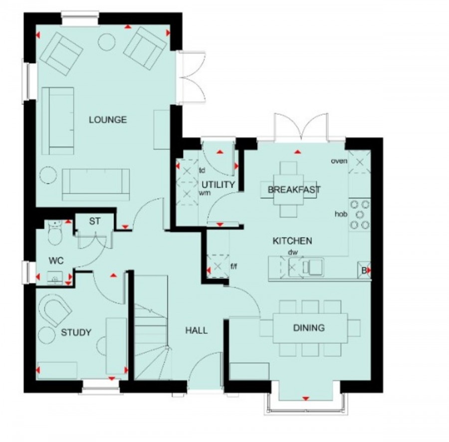 - Entrance Hall, Guest WC, Study, Utility & Dining Kitchen with Range Master Cooker