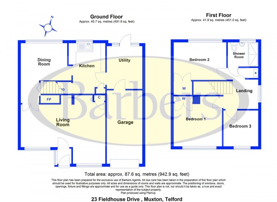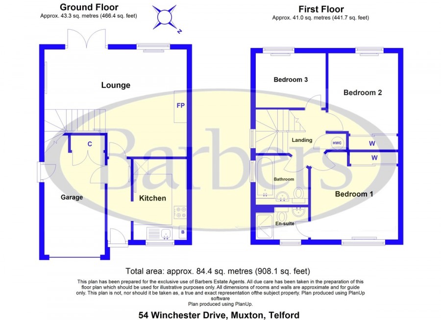 By arrangement with the Agents' office at 1 Church Street, Wellington, Shropshire TF1 1DD. Tel: 01952 221200 Email: wellington@barbers-online.co.uk