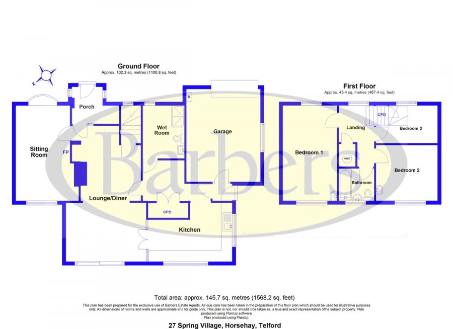 By arrangement with the Agents' office at 1 Church Street, Wellington, Shropshire TF1 1DD. Tel: 01952 221200 Email: wellington@barbers-online.co.uk